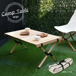 工具が一切不要な組み立て式ロールトップのキャンプテーブル、ブナの木の無垢材が自然の温かみと柔らかさを感じさせます。専用のバッグ付きでレジャーやアウトドアに持っていくことができ、脚と天板を広げたら乗せて固定するだけなので簡単に組み立て・片付けが可能です。また、脚には安全キャップがついているので室内でも床の傷を防ぎ、安心してお使いいただけます。