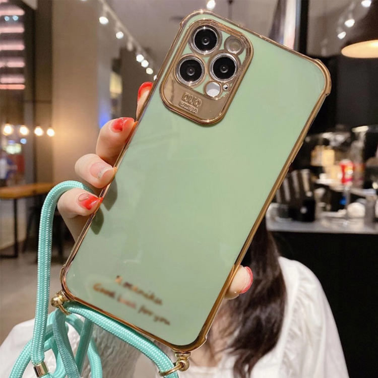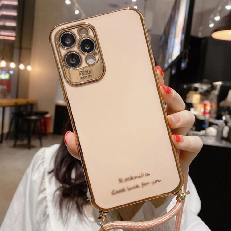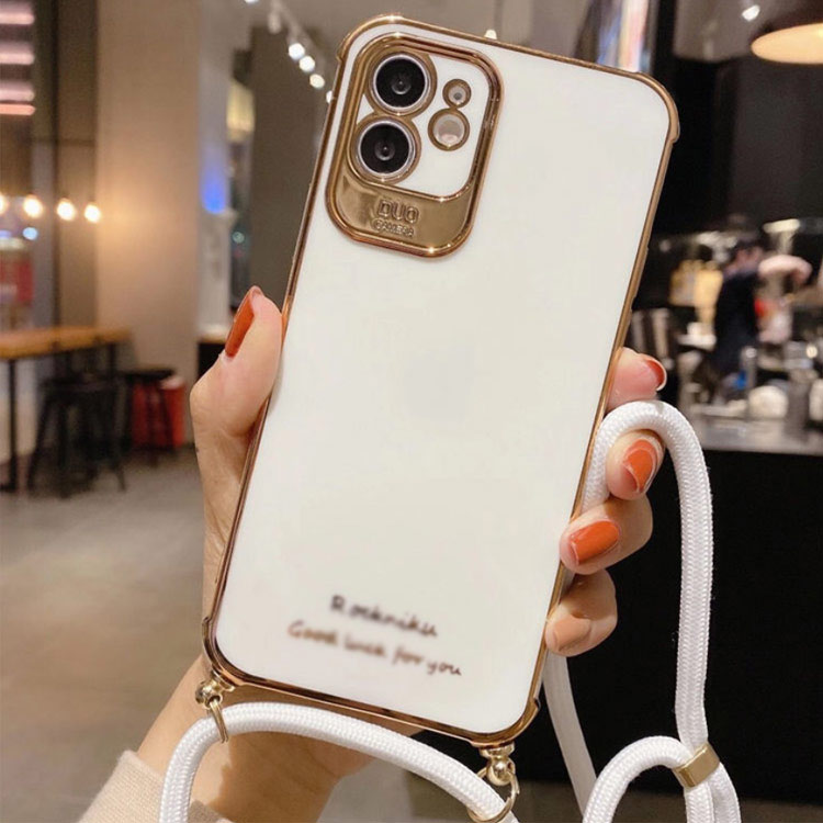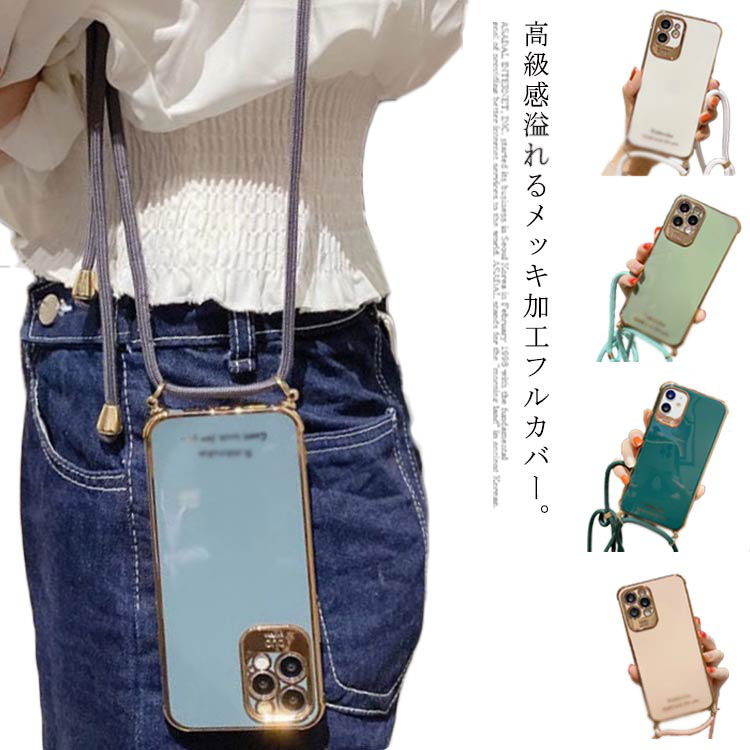 そんな方におすすめしたいのがこのショルダーストラップ付スマホカバー。高級感あふれるメッキ加工のおしゃれなデザインはもちろん、肩にかけれるので片手にスマホを持つ必要がありません。ポケットのない服でも、スマホ一つでおでかけできますよ。